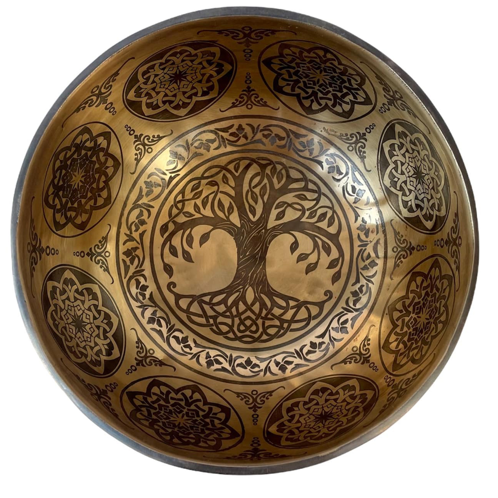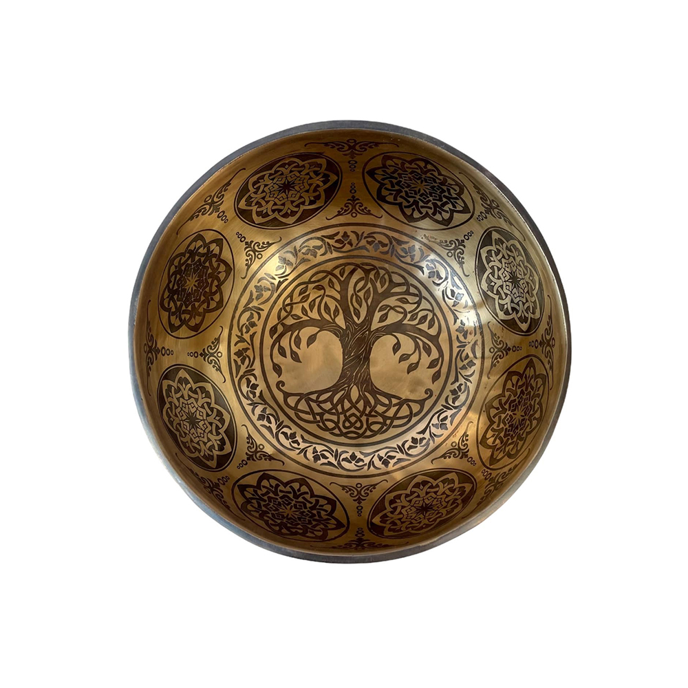 The etching and carving on this Buddhist Handmade [jambati] Singing Bowl With [tree Of Life] Design, [fine Carving] are of very high quality. As you may have observed, the lines are thicker than usual since they were painted with a bigger brush. However, we have hired a superb thangka painting artist to draw this Buddhist Handmade Singing Bowl [jambati] With [tree Of Life] Design, [fine Carving]. As a result, the lines are comprehensive and dinner-related.