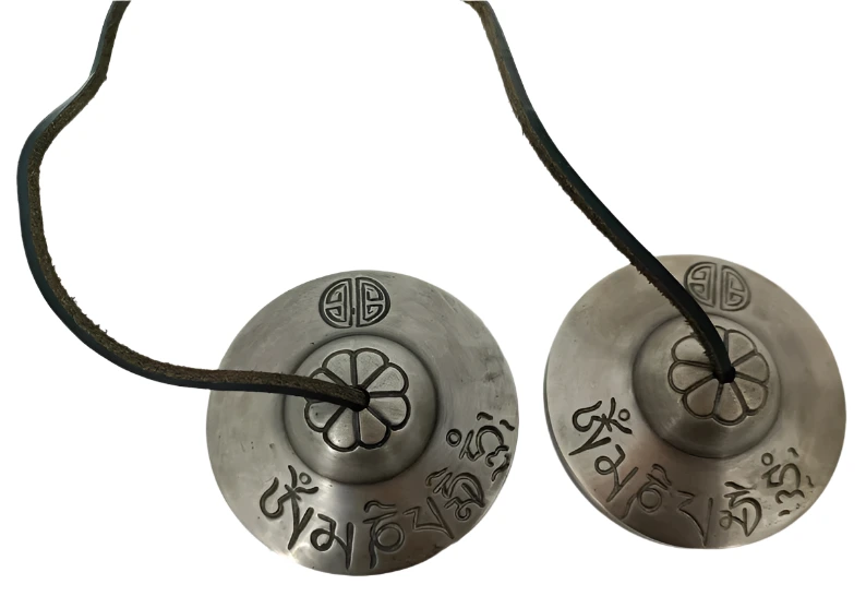 Full Moon Tingsha Bell OM Mani Padme Hum Mantra Design with Metal Cover, Made in Nepal