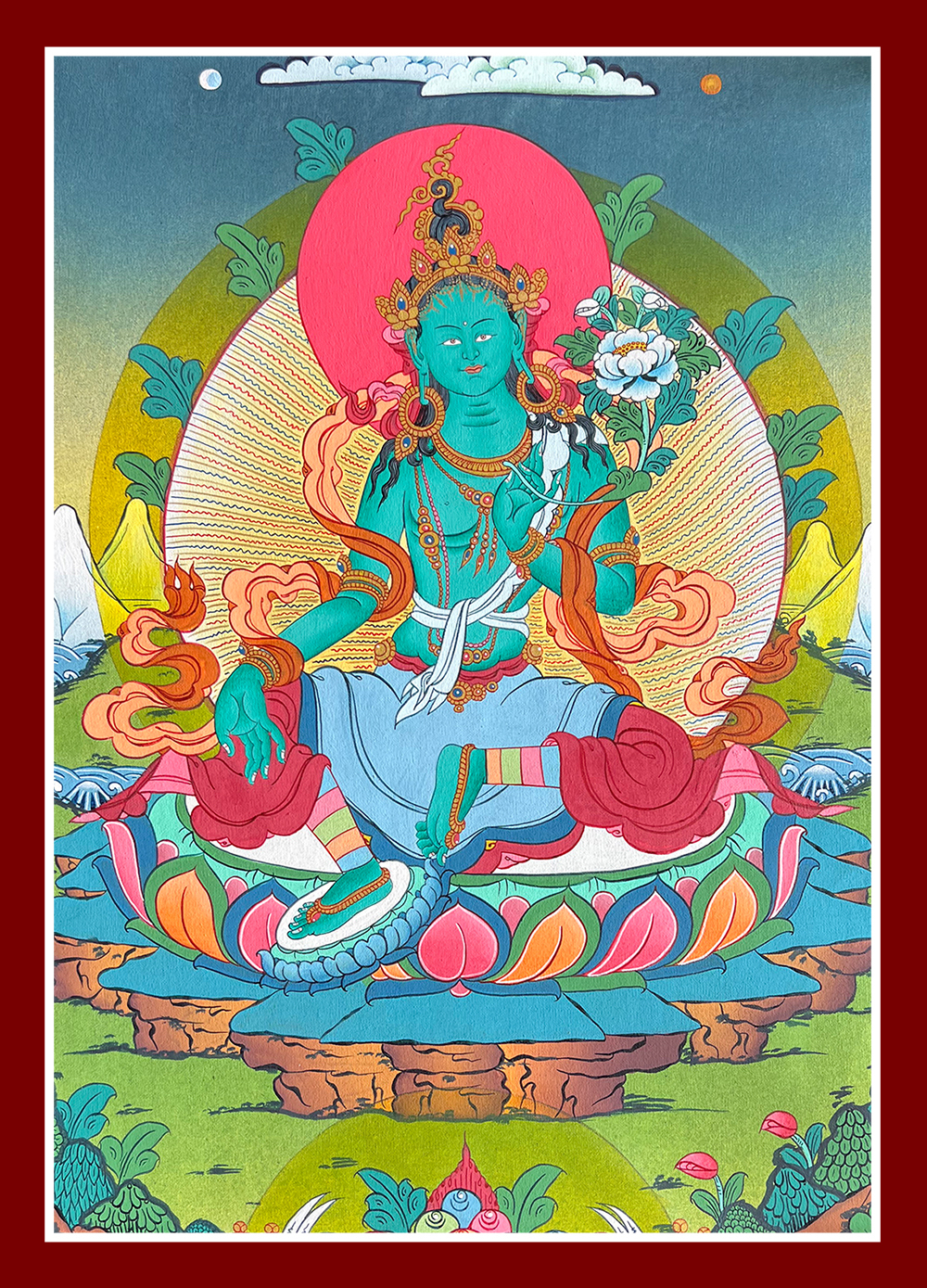 Tara is a manifestation of Chenrezi, the Bodhisattva of Compassion, according to the tale. Chenrezi once cried twice because he was so moved by the suffering of all sentient beings. His right eye’s tear transformed into Tara’s green shape, while his left eye’s tear changed into Tara’s white form.