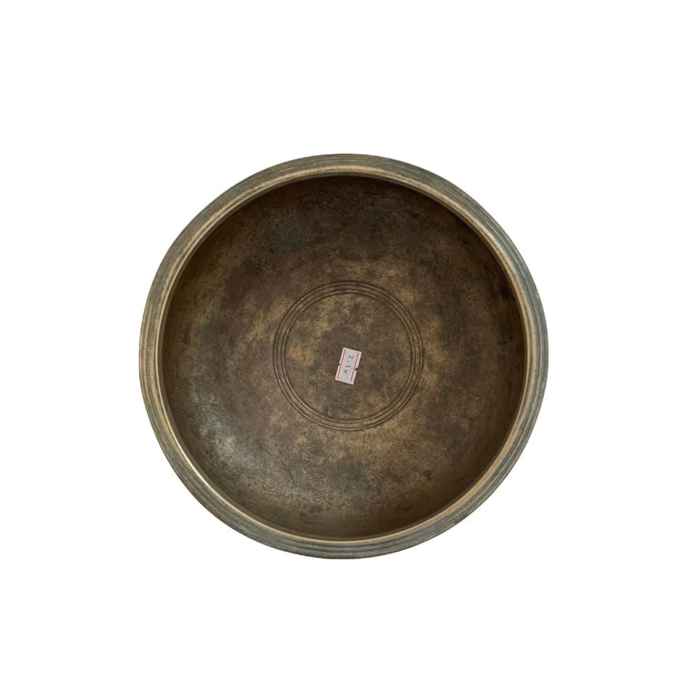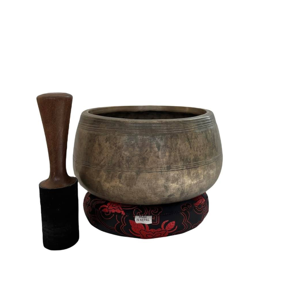 Mani bowls are a popular item among collectors and practitioners because of their unique shape that produces exceptional sound quality. These bowls are usually dated between the 16th and 19th century. The antique bowl being described here has a rare and distinct shape known as a “Mani” bowl, which is highly coveted by collectors. It has a significant weight and thickness of walls, with a concave form that creates a higher tone. Its beautiful aging only adds to its appeal as a unique and valuable item.